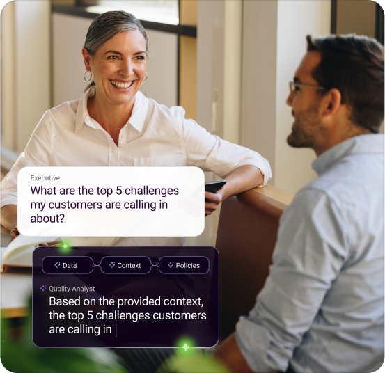 No more listening back to calls and relying on auto-scoring. Get unbiased, accurate insights to boost agent and contact center performance using AI—all you have to do is ask.