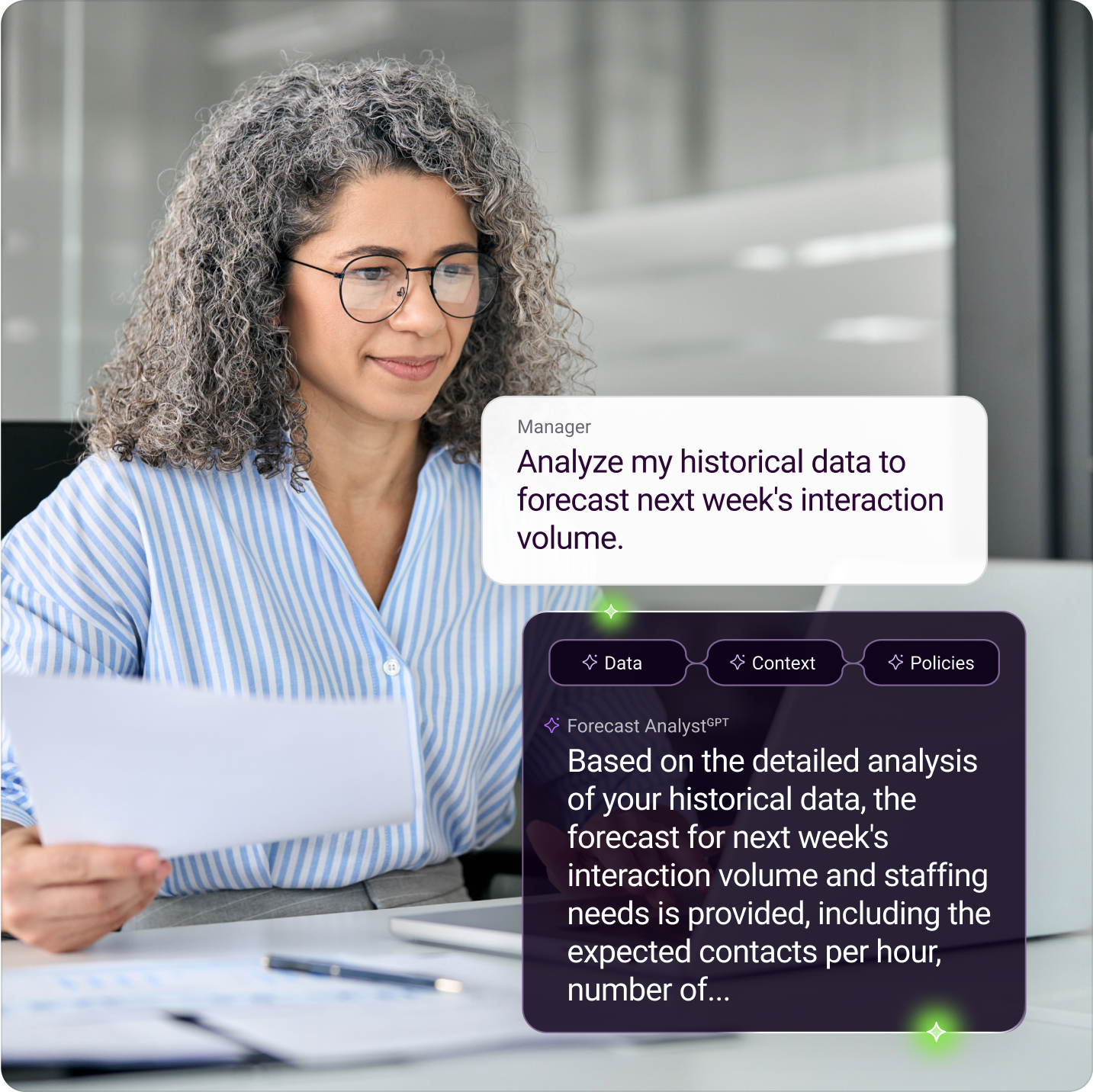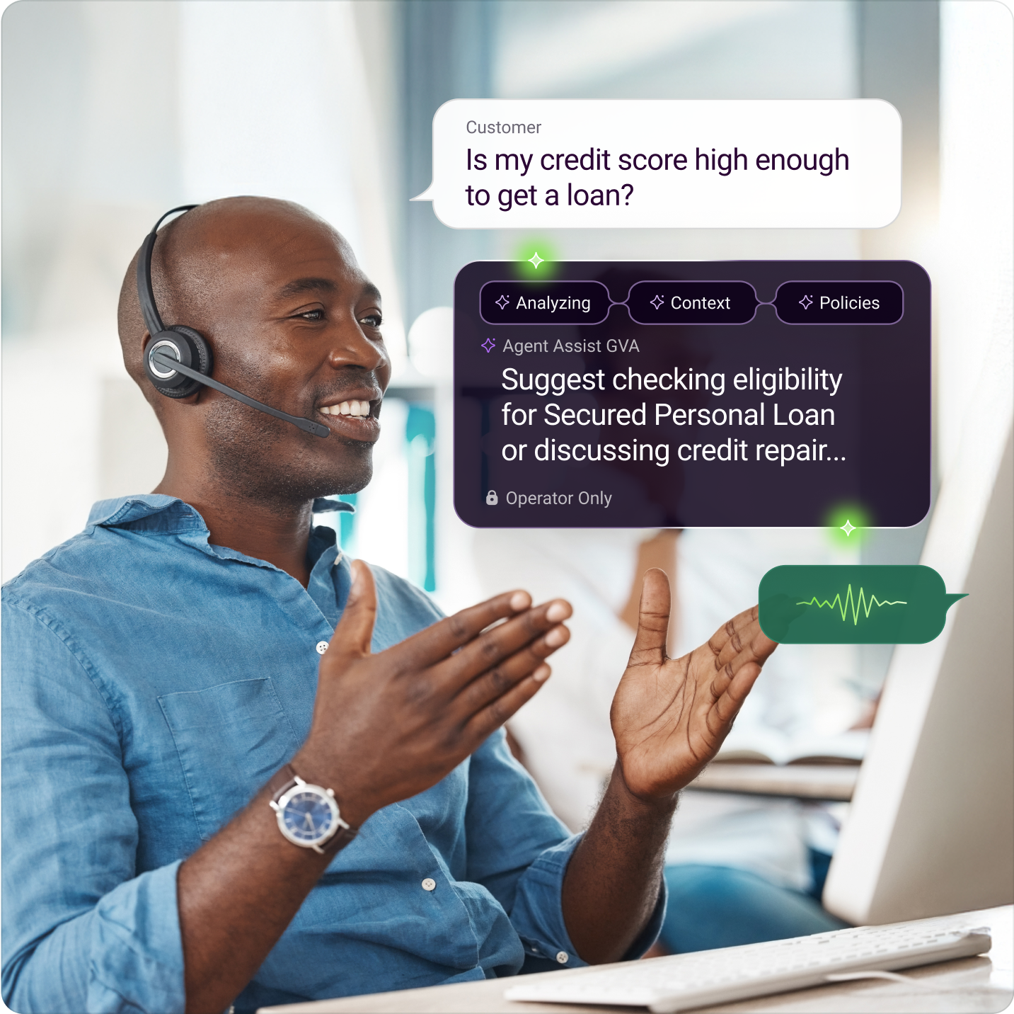 Create exponential gains in ease and efficiency by letting the Phone GVA answer every call and embedding AI for All™ throughout your contact center workflow